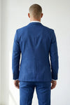 O Terno Masculino Poliéster Semi Slim Azul Texturizado se destaca pela tonalidade azul intensa combinada à textura discreta distribuída por todo o tecido. O efeito visual cria profundidade e diferenciação sem excesso, valorizando a cor e tornando o traje mais interessante sob diferentes iluminações. A lapela tradicional mantém proporção clássica, equilibrando a presença marcante do azul com desenho atemporal.