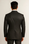 Terno Slim Masculino Preto Xadrez Lapela de Bico em Poliviscose