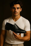 Feito à mão em couro legítimo de alta qualidade, o Loafer Elite oferece maciez natural e caimento confortável desde o primeiro uso. A estrutura interna acolchoada e o revestimento em material antitranspirante mantêm o bem-estar durante o uso prolongado. O solado em borracha nobre antiderrapante proporciona firmeza e suavidade ao caminhar, enquanto o acabamento manual com cremes neutros revela o brilho sutil e o cuidado artesanal que caracterizam um verdadeiro calçado premium.
