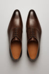 Produzido artesanalmente em couro legítimo de alta qualidade, o Wholecut oferece resistência e maleabilidade ideais para um uso confortável e duradouro. A palmilha anatômica em espuma D60 e neoprene proporciona encaixe preciso e absorção de impacto, enquanto a forração interna antitranspirante favorece a respirabilidade e mantém o frescor ao longo do dia. O solado em couro, costurado à mão e combinado a um salto em madeira com capa de borracha, garante estabilidade e durabilidade. O acabamento manual, feito com cremes neutros e brilho moderado, destaca a textura natural do couro e confere ao modelo uma aparência impecável e atemporal.