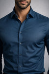Com modelagem Slim fit, a camisa acompanha o corpo de forma ajustada e elegante, mantendo liberdade de movimento graças ao elastano na composição. O colarinho tradicional estruturado, os punhos com botões e o tecido de caimento tornam-se uma peça versátil para o trabalho, reuniões ou eventos sociais, funcionando muito bem com alfaiataria, jeans escuro ou chino slim.