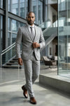 O Terno Masculino Grigio Príncipe de Gales Semi Slim apresenta um clássico padrão xadrez em uma abordagem mais moderna com sua lapela pespontada, trazendo leveza e sofisticação ao visual masculino. Confeccionado em Poliviscose, combina estrutura, conforto e excelente apresentação, enquanto o corte Semi Slim valoriza a silhueta com naturalidade em eventos sociais e ambientes profissionais.
